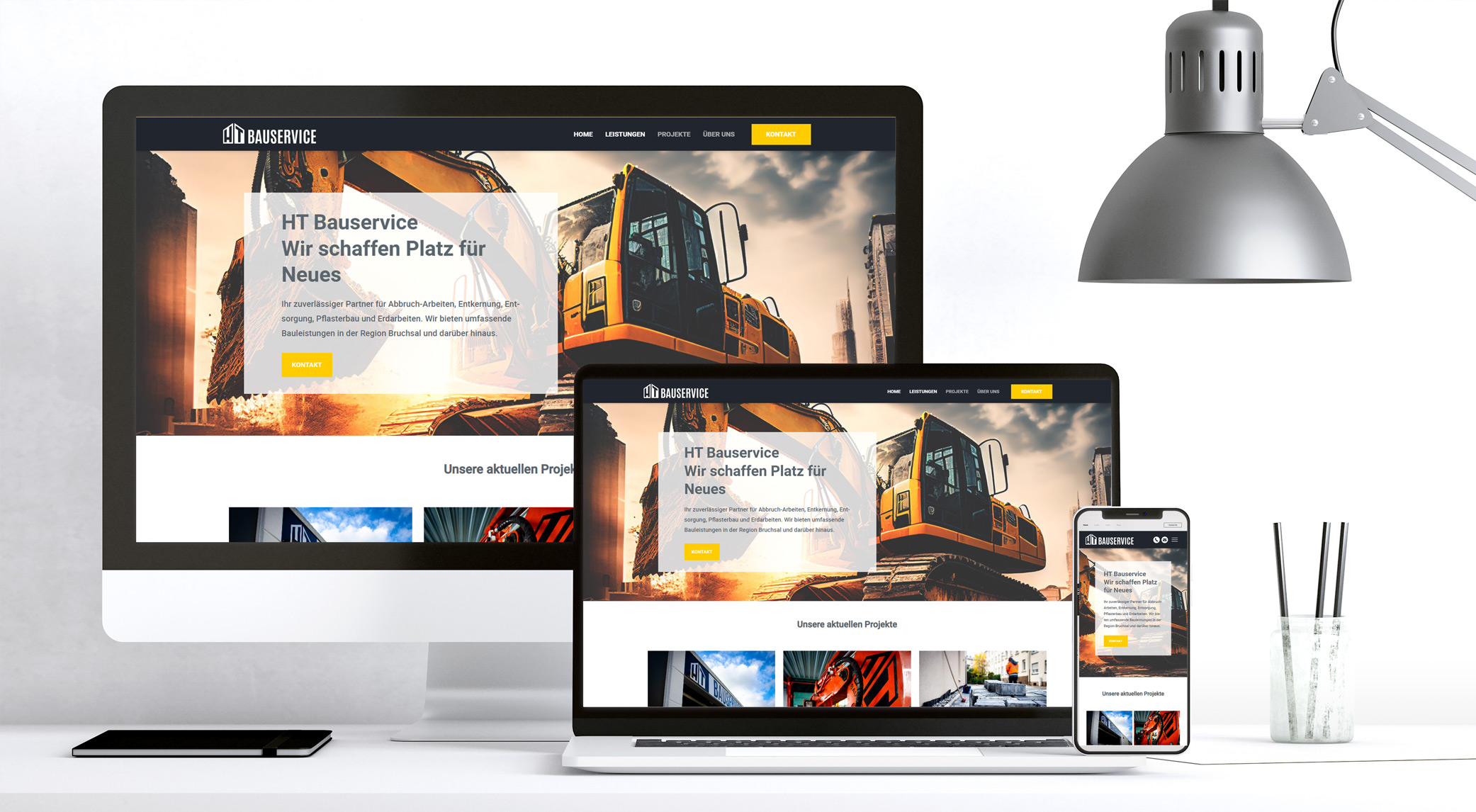 In enger Abstimmung mit "HT Bauservice" entwickeln wir eine maßgeschneiderte Marketingstrategie. Wir haben das Logo harmonisch angepasst und dabei die Grundform beibehalten, um den Wiedererkennungswert der Marke zu wahren. Wir gestalten Printmedien wie Broschüren, Flyer, Außenwerbung und die Firmenausstattung, um das vielfältige Leistungsangebot von HT Bauservice zielgerecht zu bewerben.